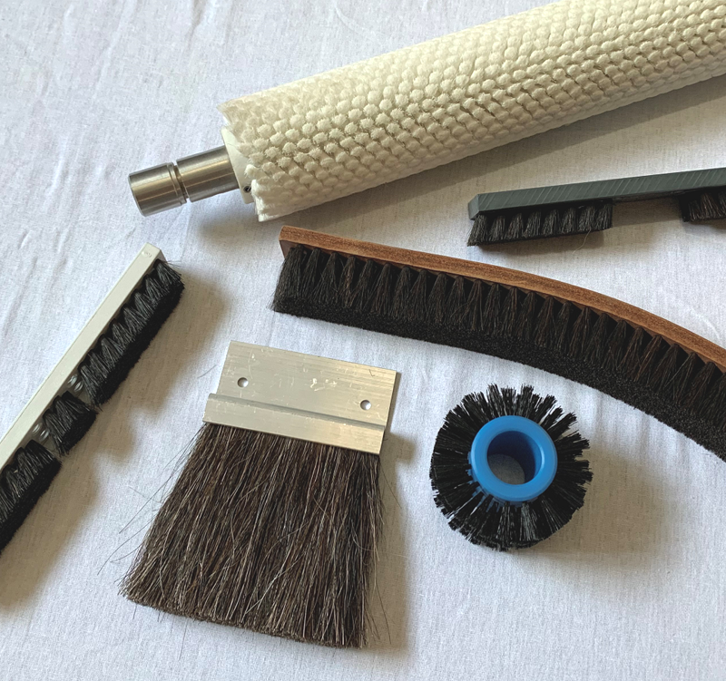 Antistatic brushes are indispensable for modern printing presses as they safely conduct troublesome electrostatic charges. Cylinder brushes with antistatic bristle material can perform a similar function by preventing the charges occurring in the first place.