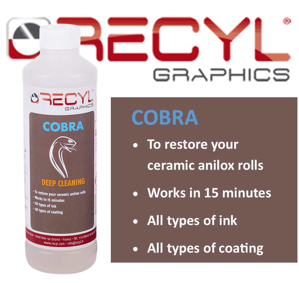 Recyl’s Cobra was the first product released by Recyl in 1989, being the pioneering invention from Recyl’s founder, Pierre Chevreux in collaboration with the inventors of the laser-engraved ceramic Anilox rollers. In the last twenty-seven years, Cobra has established itself as the one-stop solution for Anilox deep-cleaning and complete restoration of ink-transfer capacity, coming to the aid of flexo printers in times of serious clogging in the cells.