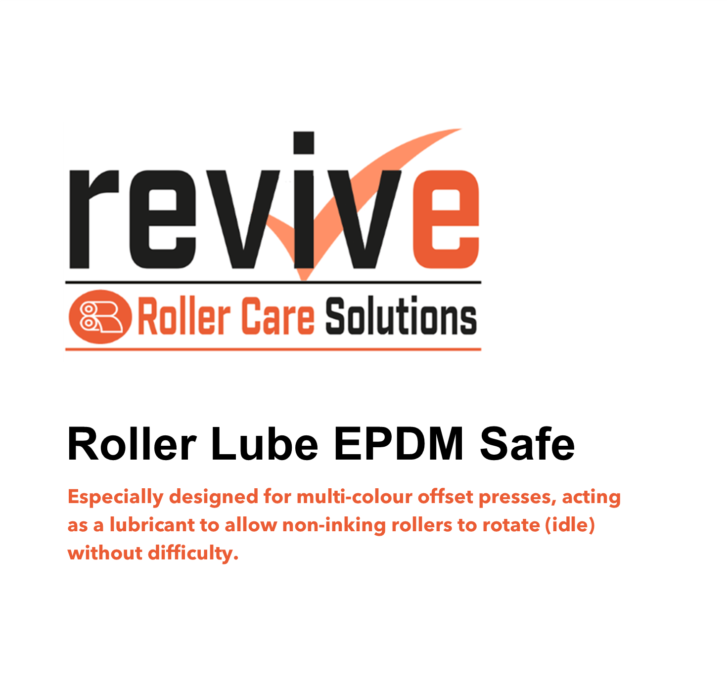 Revive Roller Lube EPDM Safe allows ink rollers, which are not covered with ink, to rotate (idle) without any trouble. It protects these rollers as does Revive Roller Lube as it acts like a lubricant. It overcomes excessive heat and so there is no mechanical friction resulting in a situation where ink rollers last much longer.