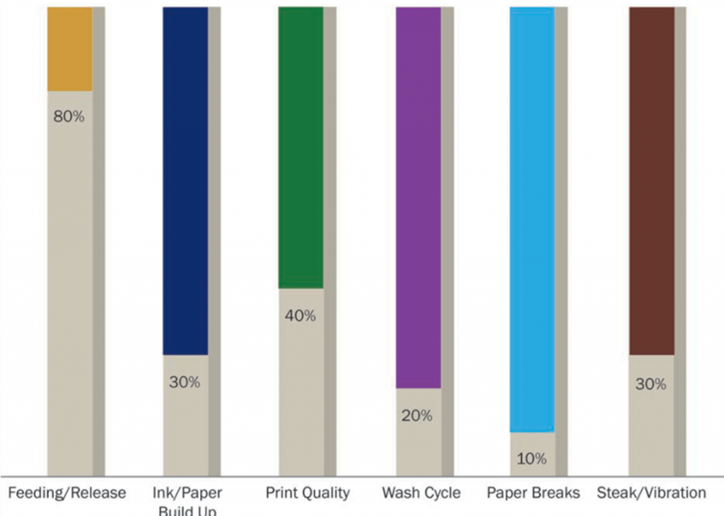 An inappropriate or poor quality printing blanket will inevitably lead to paper wastage 2in the feed and release stage. This is down to poor contact between paper and blanket and the paper becoming misaligned. Using an inappropriate blanket can also lead to double registrations. Obviously, this wastes paper, ink and time as it produces an unusable product – so it is best avoided.